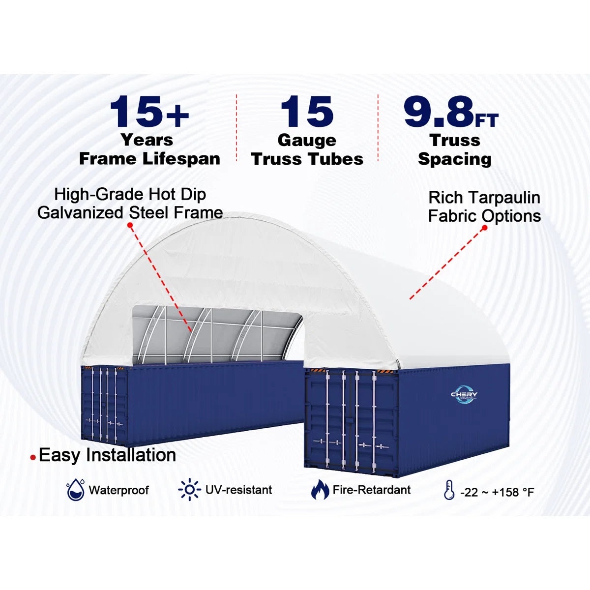 Industrial Double Truss Shipping Container Canopy Shelter (22 oz PVC, 60' W x 40' D)
